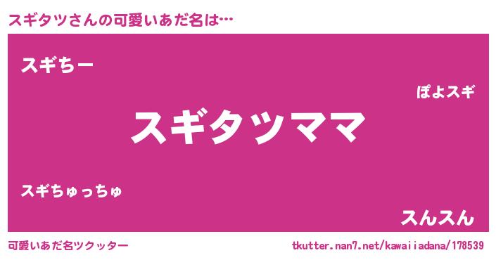 | ヒーロー風カッコイイあだ名 | 『ネオスギタツ』『ウルトラスギタツマン』 |
