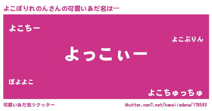 | 男性向けラノベタイトル風あだ名 | 『よこぼりれのんの嫁は女の子じゃないと思った?』 |