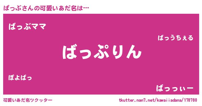 | 女子向けラノベタイトル風あだ名 | 『ばっぶの玉の輿計画!』『闇のばっぶ』 |
