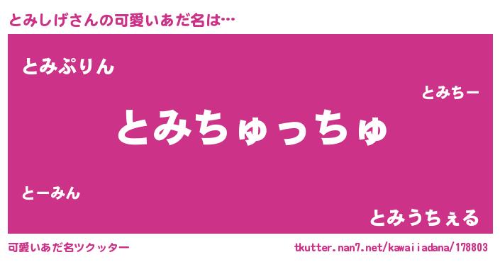 | 女子向けラノベタイトル風あだ名 | 『死神とみしげの再婚』『闇のとみしげ』 |