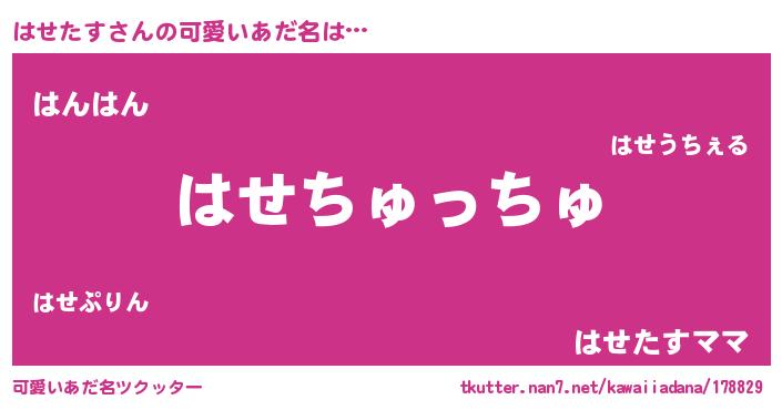 | ヒーロー風カッコイイあだ名 | 『慈愛の使者はせたす』『ネオハセタス』 |
