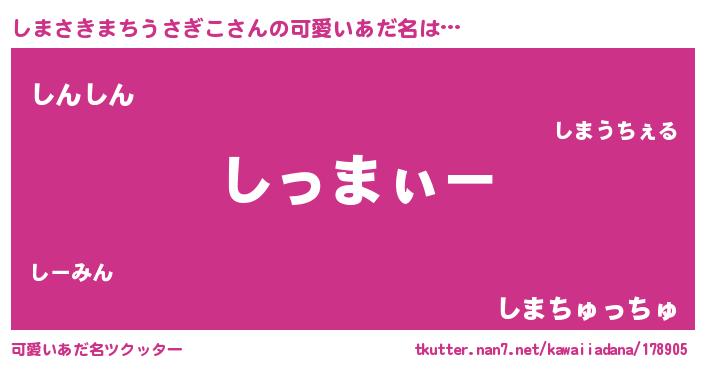 | 意味不明あだ名 | 『とにかく怪しいしまさきまちうさぎこ』 |