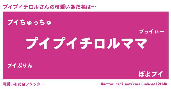 | 男性向けラノベタイトル風あだ名 | 『プイプイチロルという概念が存在しない退屈な世界 』 |