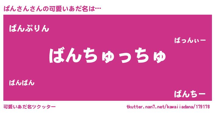 | ヒーロー風カッコイイあだ名 | 『慈愛の使者ばんさん』『黄金騎士バン』 |