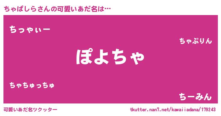 | ヘコむあだ名 | 『ちゃ太郎』『ちゃばしら(笑)』 |