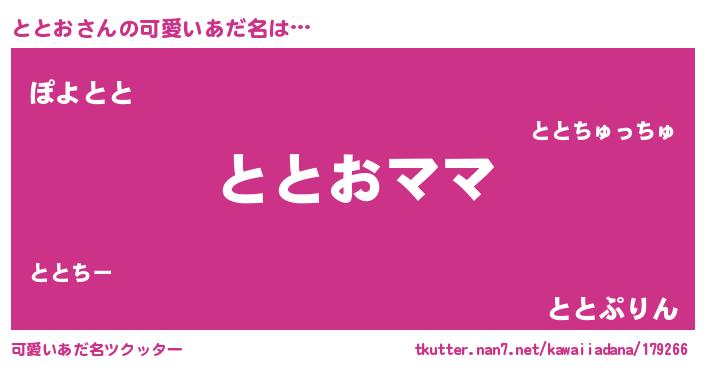 | ヘコむあだ名 | 『ととお(笑)』『牛乳』『ととにー』 |