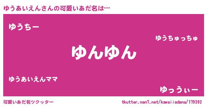 | 恥ずかしいあだ名 | 『プリティーゆうあいえん』『ゆうっちょ』 |