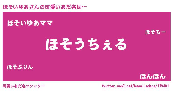 | 意味不明あだ名 | 『自称ほそいゆあ』『永久保存ほそいゆあ』 |