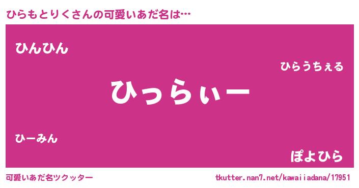 | ポケモン風あだ名 | 『ヒヒラモトリク』『ヒラチュウ』 |