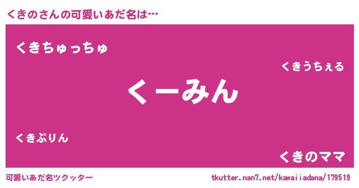 | ヘコむあだ名 | 『くきの(遠い目)』『くきもー』 |