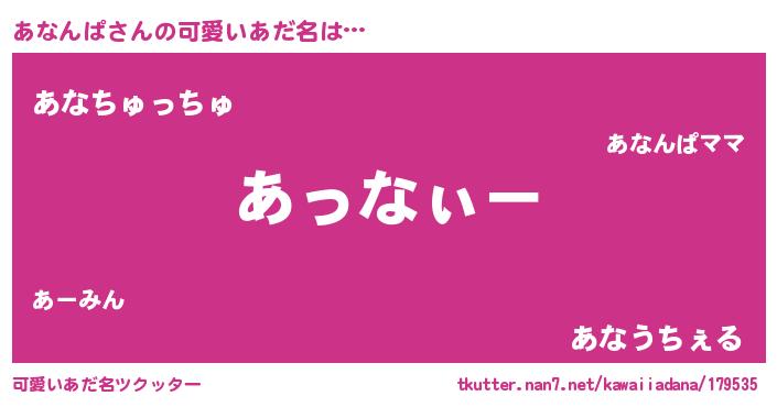 | 男性向けラノベタイトル風あだ名 | 『あなんぱの嫁は女の子じゃないと思った?』 |