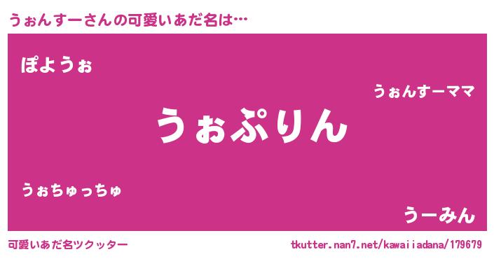 | 男性向けラノベタイトル風あだ名 | 『うぉんすー~年齢イコール彼女いない歴の魔法使い~』 |