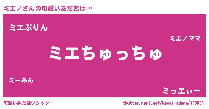 | ヒーロー風カッコイイあだ名 | 『愛の使者ミエノ』『銀牙騎士ミエ』 |