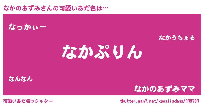 | ポケモン風あだ名 | 『ナカキング』『ヒナカノアズミ』 |