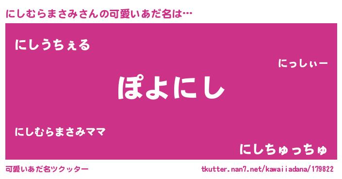 | 恥ずかしいあだ名 | 『ニシムラマサミデラックス』『にしちん』 |