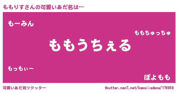 | 意味不明あだ名 | 『自称ももりす』『ペロリンももりす』 |