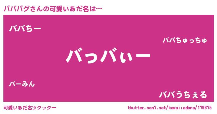 | 女子向けラノベタイトル風あだ名 | 『バババグの卵を拾いまして』 |
