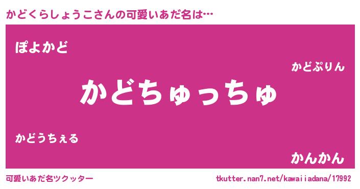 | ヘコむあだ名 | 『かどにー』『かどぷりん』 |