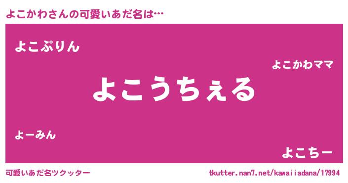 | 女子向けラノベタイトル風あだ名 | 『よこかわなんてお断りですっ。』 |