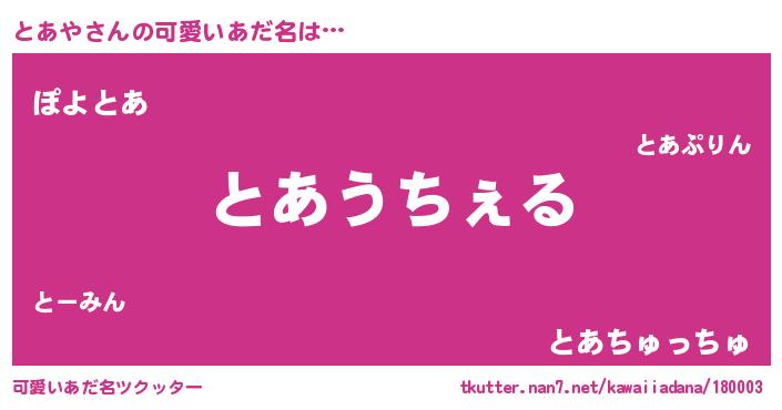 | ヒーロー風カッコイイあだ名 | 『究極戦士トアヤ』『仮面トアダー』 |