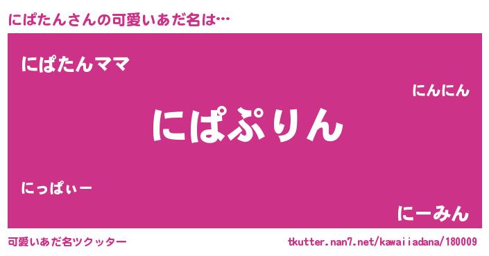 | 意味不明あだ名 | 『なめこ科にぱたん属』『自称にぱたん』 |