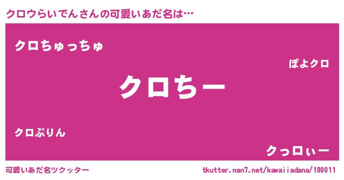 | ヘコむあだ名 | 『酢こんぶ』『クロを』『クロふぇ~』 |