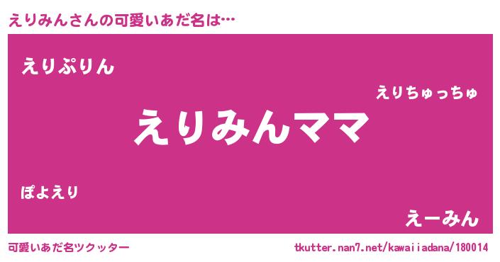 | 意味不明あだ名 | 『永久保存えりみん』『ペロリンえりみん』 |