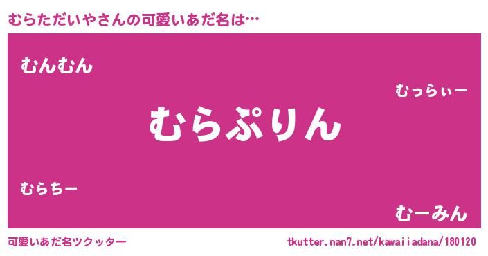 | 恥ずかしいあだ名 | 『プリティーむらただいや』『むらっちょ』 |