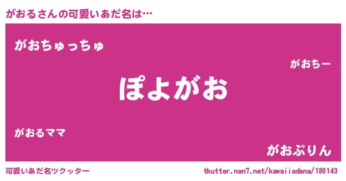 | 男性向けラノベタイトル風あだ名 | 『この素晴らしい世界にがおるを!』 |