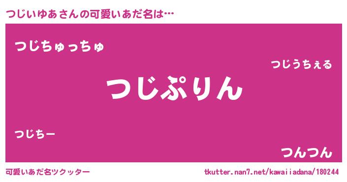 | 男性向けラノベタイトル風あだ名 | 『つじいゆあ~年齢イコール彼女いない歴の魔法使い~』 |