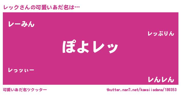 | ポケモン風あだ名 | 『レーッイ』『レッゴンZ』 |