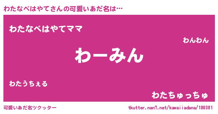 | 意味不明あだ名 | 『永久保存わたなべはやて』 |
