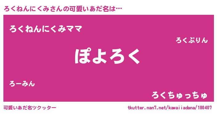 | ポケモン風あだ名 | 『ロークイ』『ゼニロク』『ロクゴンZ』 |