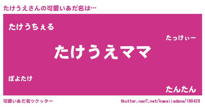 | ヘコむあだ名 | 『たけうえ(遠い目)』『たけにゅー』 |