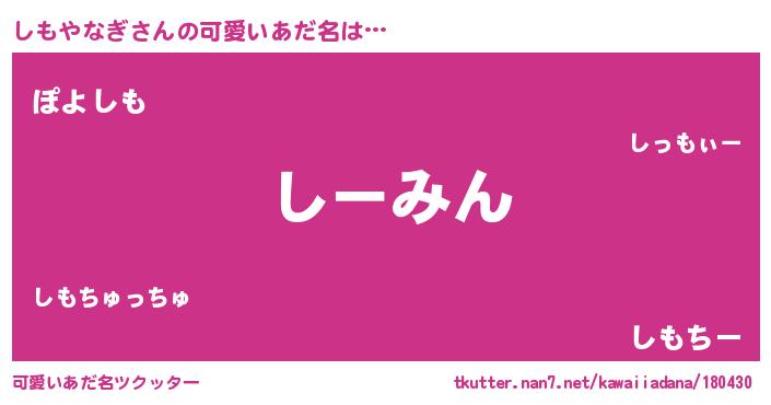 | ヘコむあだ名 | 『豆乳』『しもを』『しもにゅー』 |