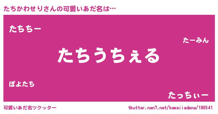 | 女子向けラノベタイトル風あだ名 | 『たちかわせりなんてお断りですっ。』 |