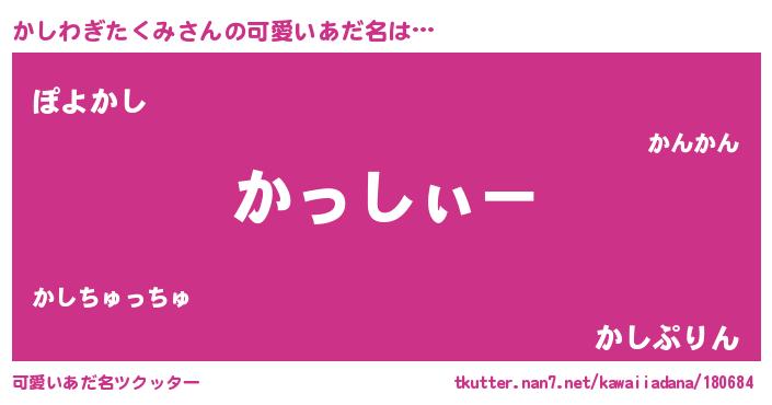 | 意味不明あだ名 | 『とにかく怪しいかしわぎたくみ』 |
