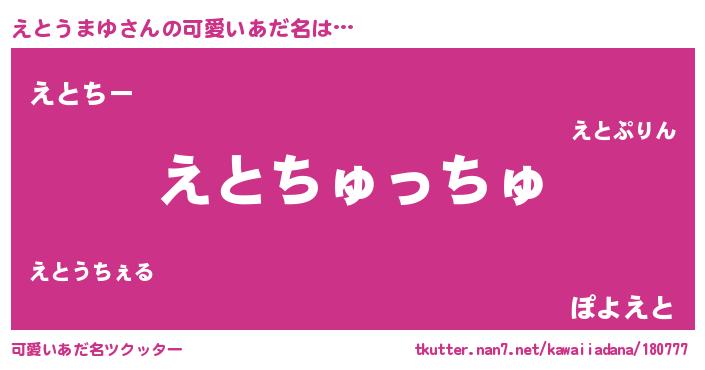 | ヒーロー風カッコイイあだ名 | 『慈愛の使者えとうまゆ』『仮面エトダー』 |