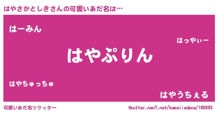 | 料理風あだ名 | 『はやさかとしきごはん』 |