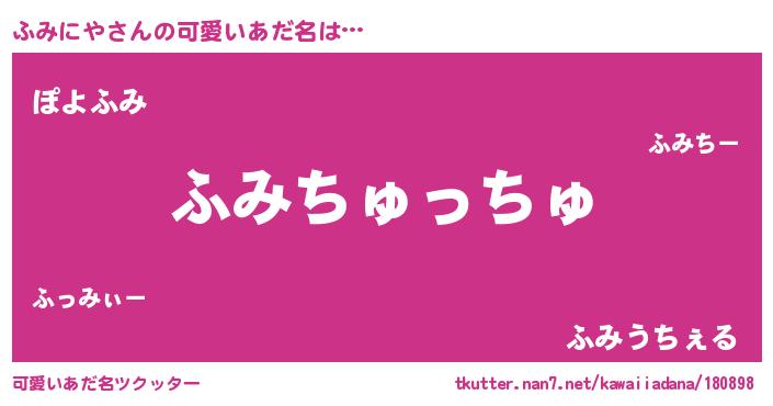 | ヘコむあだ名 | 『つくし』『ふみを』『ふみっふぃ~』 |