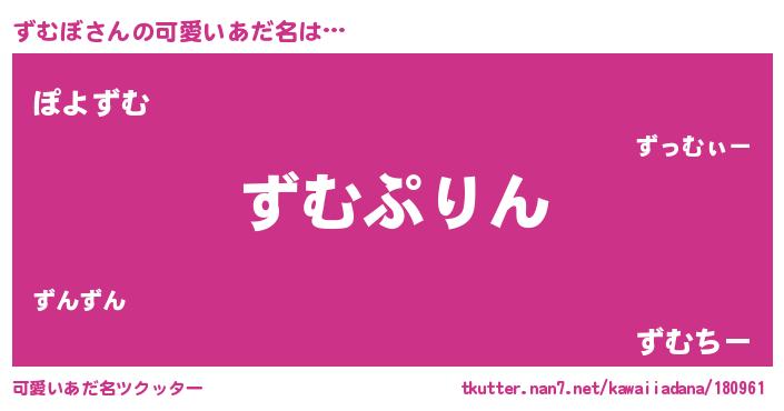 | ヘコむあだ名 | 『酢こんぶ』『ずむっぺ』『ずむにー』 |