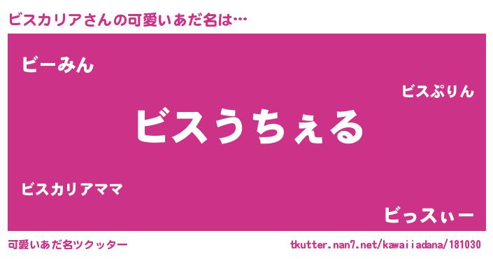 | ヘコむあだ名 | 『ビスっぺ』『ビスカリア(笑)』 |