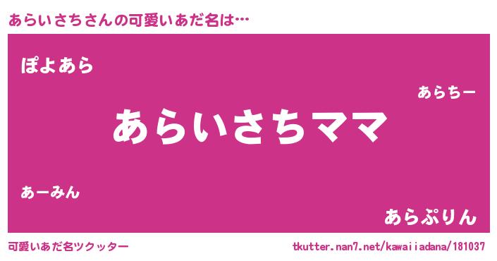 | 恥ずかしいあだ名 | 『あらちん』『あらっちょ』 |