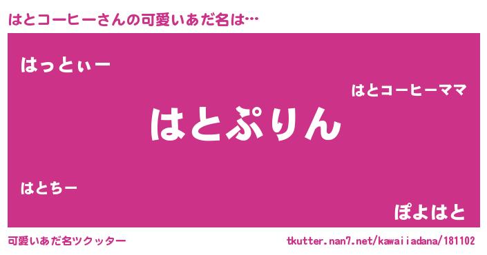 | 料理風あだ名 | 『はとコーヒーごはん』 |