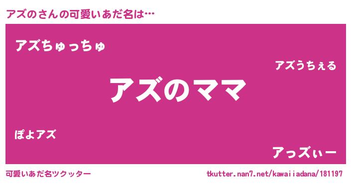 | 意味不明あだ名 | 『永久保存アズの』『自称アズの』 |