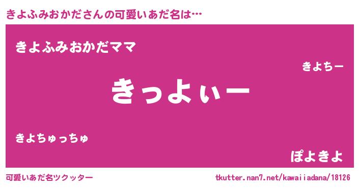 | 女子向けラノベタイトル風あだ名 | 『きよふみおかだの卵を拾いまして』 |