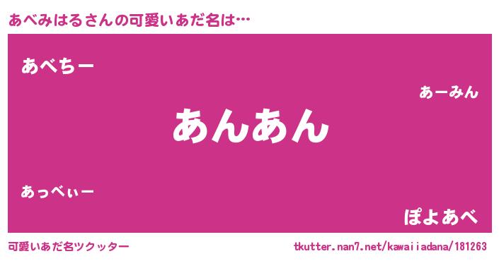 | 意味不明あだ名 | 『ペロリンあべみはる』 |