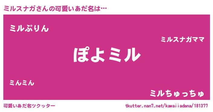 | ヘコむあだ名 | 『ミルスナガ(笑)』『ミルにゅー』 |