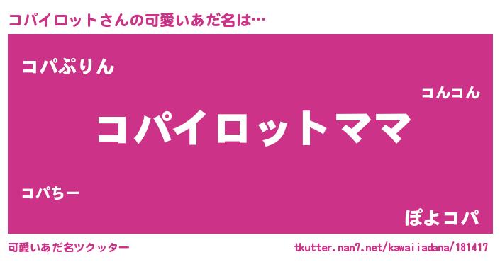 | ヘコむあだ名 | 『コパイロット(遠い目)』『コパにー』 |