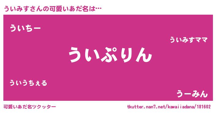 | 意味不明あだ名 | 『ヨモギ科ういみす属』『自称ういみす』 |